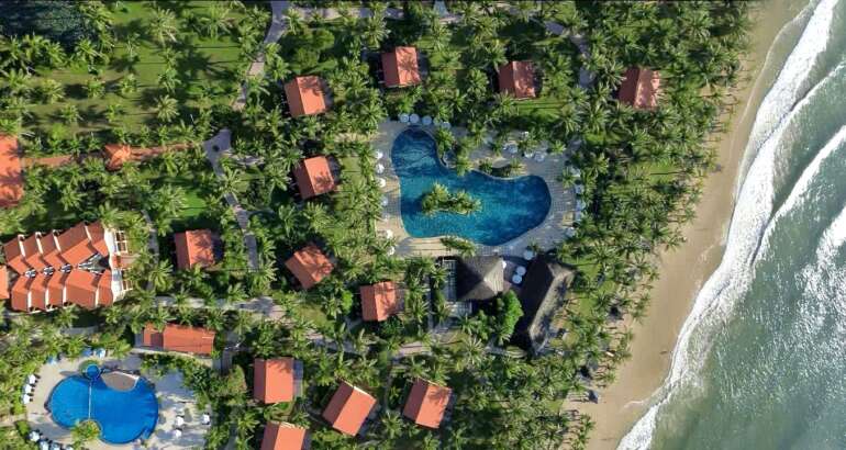 Resort 4 sao vườn nhiệt đới rộng, sát biển, hồ bơi lớn, phòng thoáng, dịch vụ ổn định, phù hợp gia đình và nghỉ dưỡng yên tĩnh.